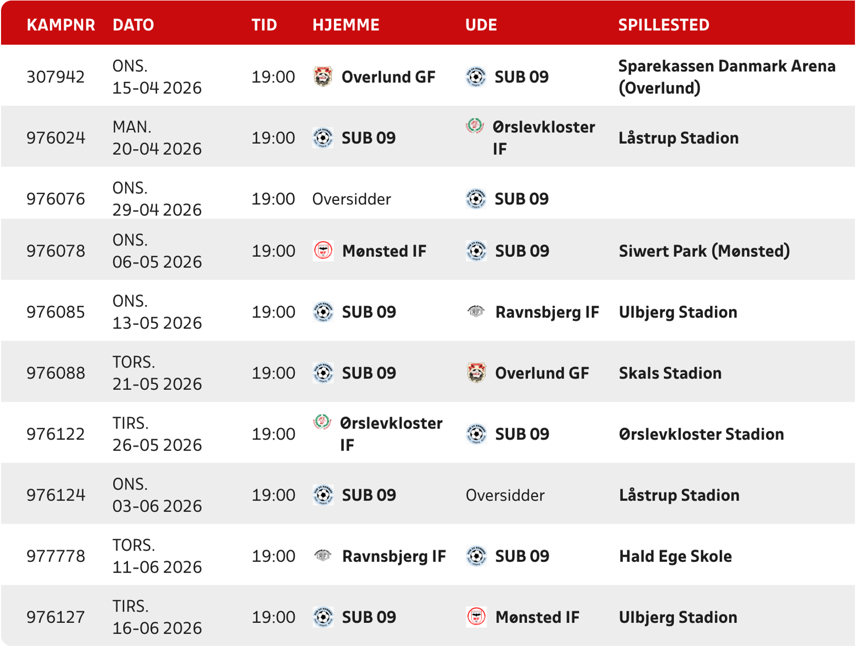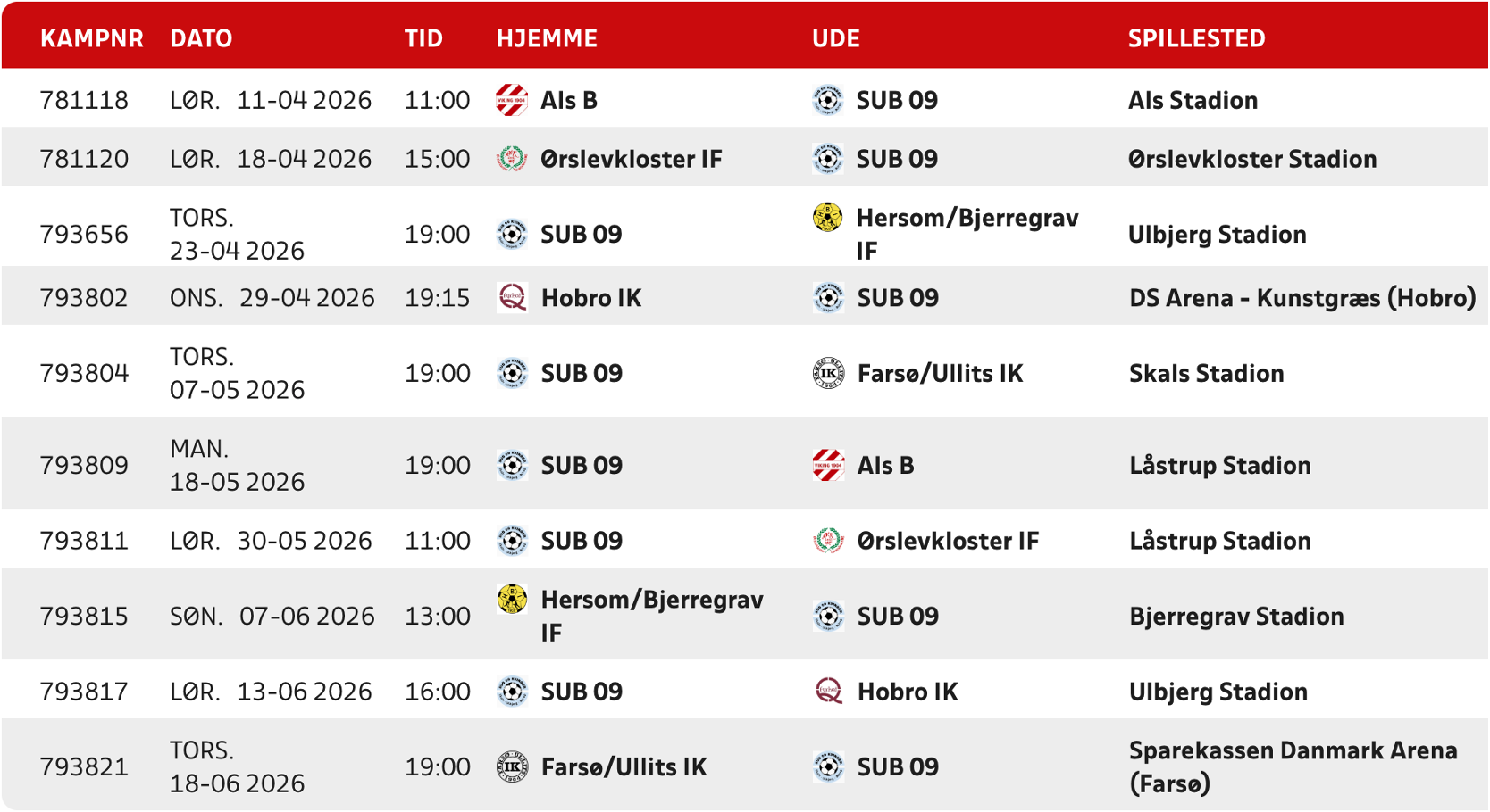 SUB 09 Kvinder er en fodboldklub, hvor der er plads til alle niveauer og ambitioner. Såvel på som uden for fodboldbanen er der fokus på det sociale fællesskab. Klubben har på nuværende tidspunkt to hold; et Kvinde C1 hold (7/11-hold) samt et Serie 1 Hold.